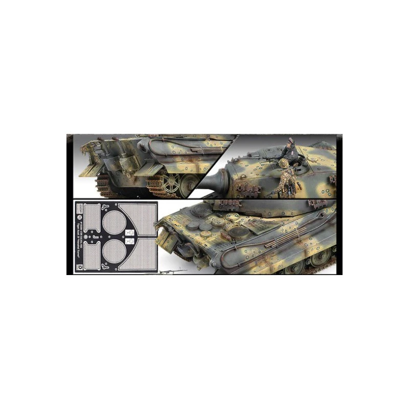 En somme, cette maquette du King Tiger de production tardive est une pièce maîtresse pour tout collectionneur ou modéliste passionné par les véhicules de la Seconde Guerre mondiale. Elle combine à la fois un niveau de détail impressionnant et une grande fidélité historique, offrant une immersion complète dans l’histoire de ce char légendaire.