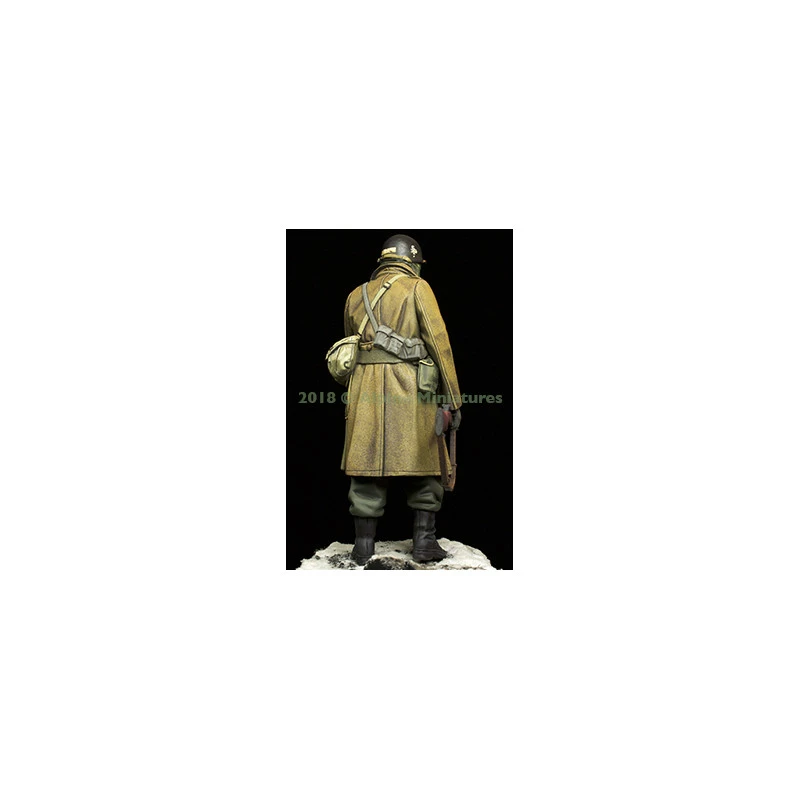 Cette figurine présente un soldat américain vêtu de l’uniforme d’hiver caractéristique de la période 1944-1945. Chaque détail de l’uniforme, des bottes aux gants en passant par la capuche, est fidèlement reproduit pour refléter avec précision l’équipement porté par les soldats américains lors des hivers rigoureux du conflit. De plus, le set inclut deux têtes différentes, offrant aux peintres figuriniste la possibilité de personnaliser leur figurine avec un casque classique ou un casque avec filet, ajoutant ainsi une touche de variété et de réalisme supplémentaire.