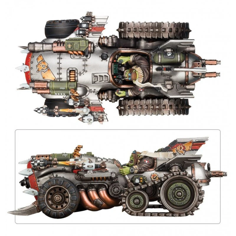 Le Megatrakk Scrapjet s’intègre parfaitement dans une armée ork, en particulier auprès des Fondus d’la Vitesse, les tribus orks spécialisées dans la conduite effrénée et le chaos sur roues. Ce véhicule est idéal pour tout joueur cherchant à renforcer son armée avec un engin rapide, puissant et équipé pour le corps à corps. Avec sa foreuse prête à pénétrer les lignes adverses et ses roquettes explosives prêtes à fuser, le Scrapjet offre un excellent équilibre entre puissance de feu et agressivité. En outre, l’esthétique robuste et chaotique du modèle en fait une pièce maîtresse à la fois pour le jeu et pour la collection, attirant immédiatement l’œil sur la table de jeu.