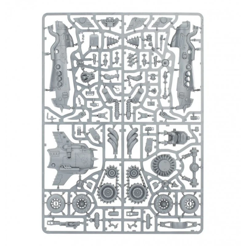 La conception même du Megatrakk Scrapjet est un hommage au génie anarchique des Meks orks. Chaque élément semble riveté, boulonné, ou même soudé sans trop de précaution, comme si le véhicule avait été assemblé dans l’urgence d’un conflit. L’attention portée aux détails dans cette maquette en 65 composants témoigne de l’amour des orks pour le bricolage mortel : les moignons d’ailes, témoins d’une carrière de vol brutalement interrompue, sont toujours là, ajoutant une touche de nostalgie pour les Flyboyz nostalgiques de leur vie passée dans les airs. En dépit de la perte des ailes, le Scrapjet est capable d’une vitesse fulgurante, propulsé par un puissant réacteur intégré. Ce réacteur semi-chenillé confère au véhicule une propulsion hybride, lui permettant de filer sur le champ de bataille avec une agilité inattendue pour une machine aussi massive.