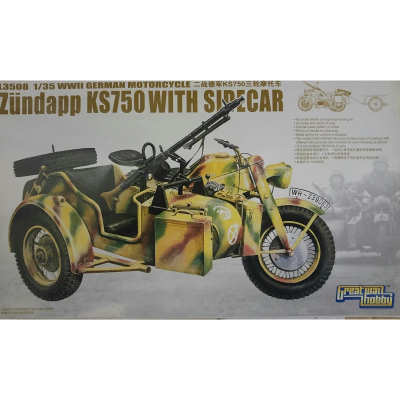 Maquette Great Wall Hobby® WW2 German Motorcycle Zundapp KS750 sidecar échelle 1:35 référence L3508.
