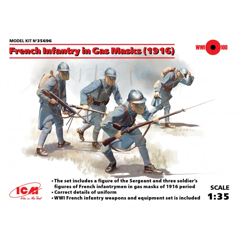 Assemblez 4 soldats français avec masques à gaz de la première guerre mondiale échelle 1:35 ICM®.