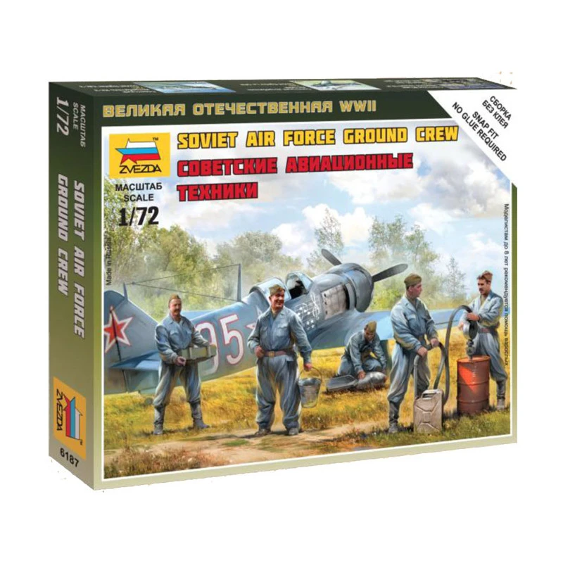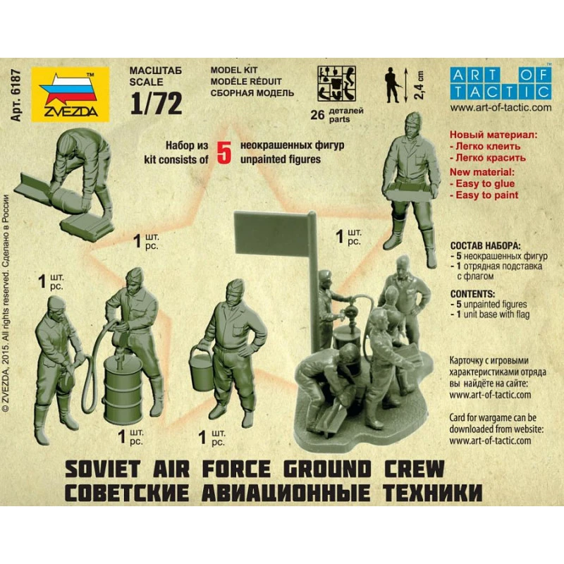 Maquette militaire Zvezda petit prix contenant 5 soldats soviétiques « soviet air force ground crew » à peindre. Échelle 1:72.