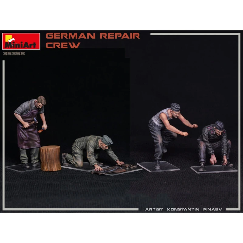 Équipe de réparation allemande de la seconde guerre mondiale échelle 1:35 MiniArt®. Idéal pour représenter un atelier de campagne allemand pour un diorama.