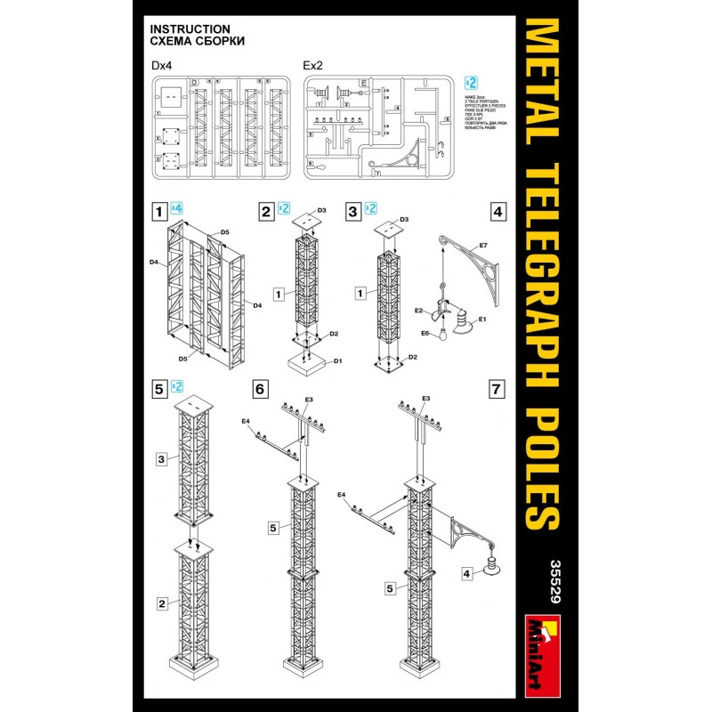 Maquette plastique, échelle 1:35eme, comprenant les pièces pour assembler plusieurs poteaux télégraphiques en métal MiniArt®. Modèle à assembler et à peindre.