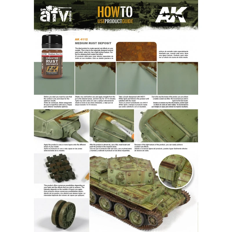 Le produit parfait pour recréer une texture rouille dans une couleur rouille moyenne sur les surfaces de véhicules ou d’accessoires. Une fois sèches, elles ont le même aspect écaillé que la vraie rouille crouteuse. La finition est extrêmement authentique et peut être combinée avec d’autres tons pour plus de réalisme.