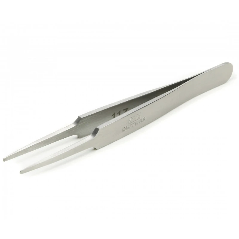 Pince précelle droite Tamiya en acier inoxydable référence 74109.