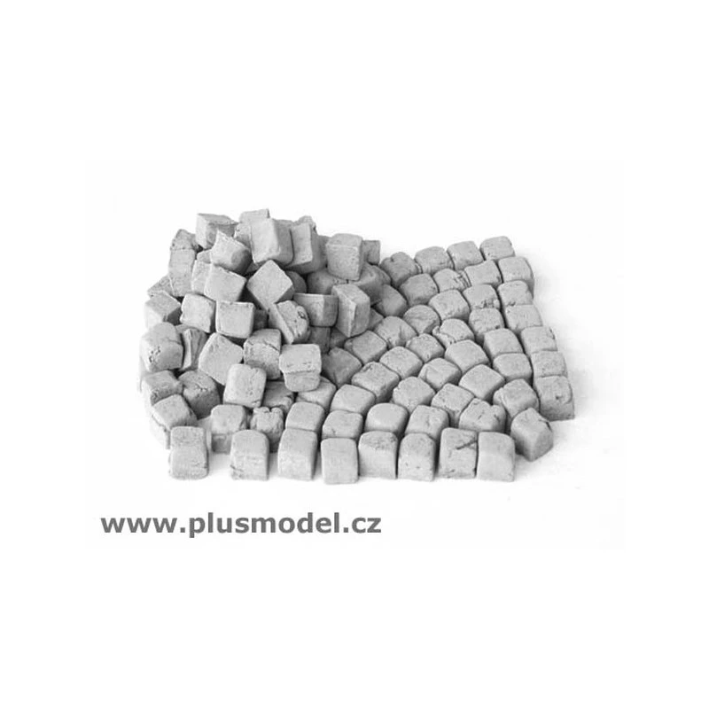 Le paquet contient des pavés en granite de petite taille pour l’échelle 1:48. Utilisez de la colle blanche (PVA) pour sceller les pavés sur votre diorama.