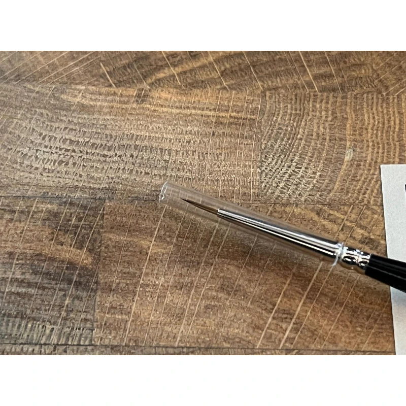 Pinceau Raphaël 8402 taille 3/0 avec poils en martre Kolinsky et sa pointe extra fine permettant un travail délicat avec des gestes lents et précis.