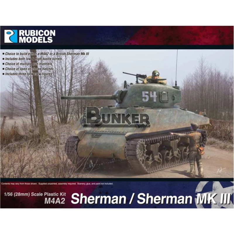 Maquette militaire plastique char américain Sherman M4A2 échelle 1:56 Rubicon Models®.