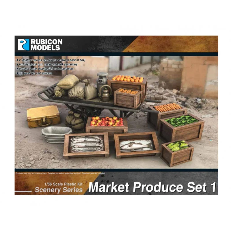 Maquette Rubicon Models® produits du marché (poisson, pomme, truite, carotte, oignon, …) échelle 1:56 à assembler et à peindre.
