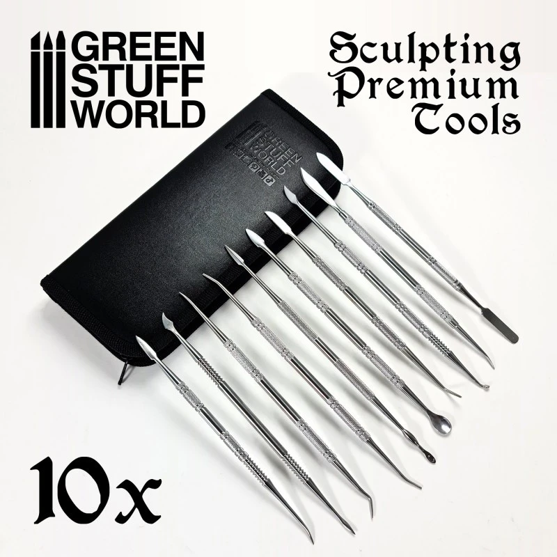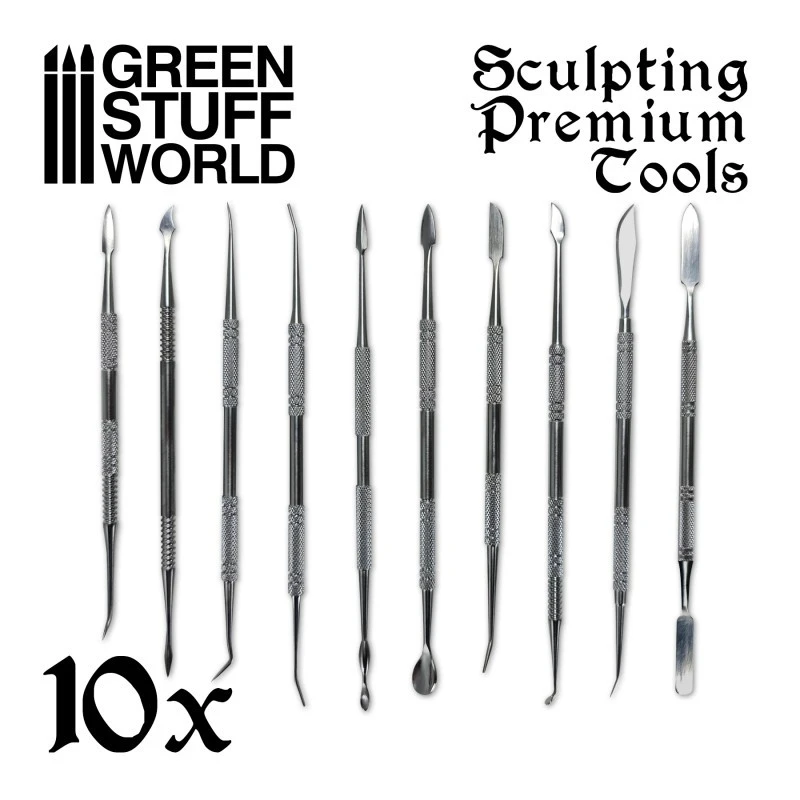 Ils ont un total de 20 pointes différentes en acier inoxydable à utiliser avec toutes sortes de mastics comme le résine verte (Green Stuff), le Milliput, le Sculpey, les argiles polymères, etc. Pour tous les types de modelage artistique et de retouche de figures.