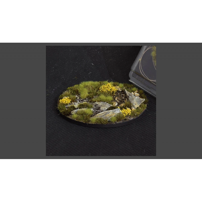 Les bases des hautes terres ont des sols rocheux et une couverture végétale plus ou moins dense avec de hautes herbes et de petits arbustes, présentant une large gamme de verts, éclaboussés ici et là de belles fleurs jaunes. Idéal pour simuler avec réalisme une vaste gamme de broussailles, typiques des habitats secs des pentes de montagne – landes, garrigues et maquis – les plus courantes dans les climats méditerranéens.