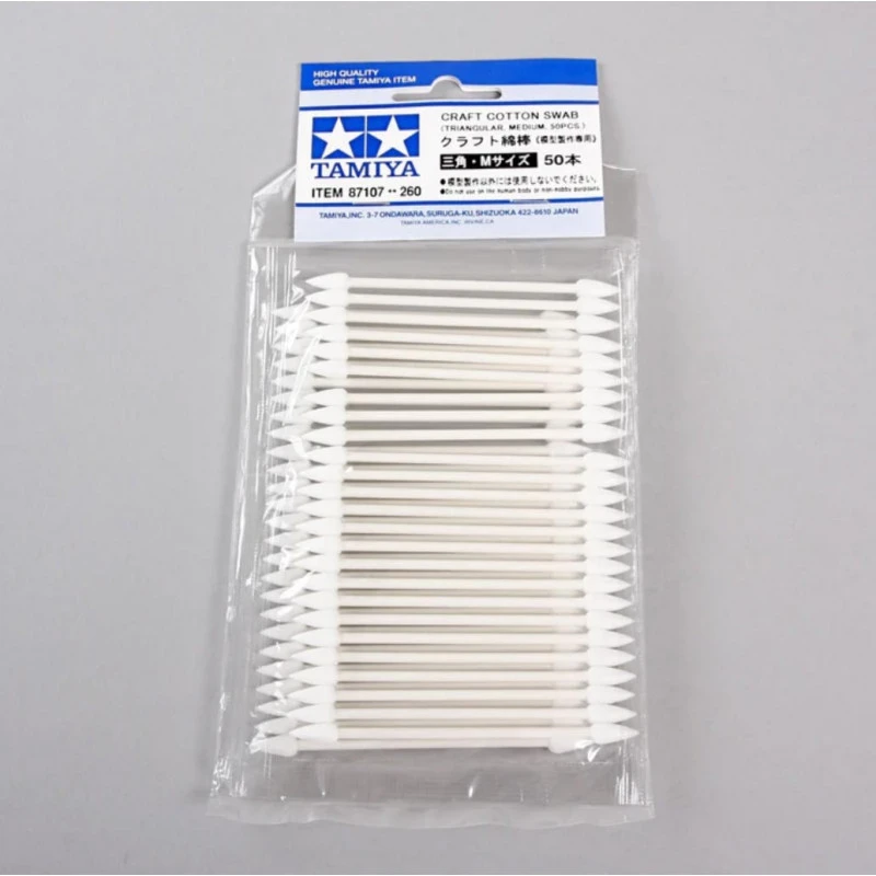 Lors de l’assemblage d’une maquette, des cotons-tiges sont souvent utilisés pour peindre et appliquer des décalcomanies. Cependant, les cotons-tiges achetés dans les supermarchés ont généralement des pointes lâches et perdent rapidement leur forme. Ces nouveaux cotons-tiges Tamiya® ont des pointes en coton étroitement filées et sont faciles à utiliser, ce qui les rend beaucoup mieux adaptés à une utilisation de loisirs.