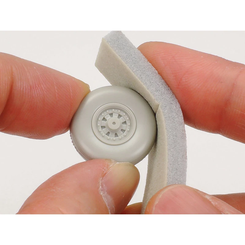 De plus, l’éponge abrasive Tamiya® est dotée d’un grain 240, un grain moyen-fin qui la rend idéale pour les étapes finales de la finition d’un modèle. Le grain 240 est particulièrement adapté pour les travaux où l’on souhaite adoucir les surfaces sans créer de rayures ou de marques trop visibles. C’est un grain qui permet de préparer les surfaces avant la peinture ou la finition, tout en maintenant une douceur et une homogénéité sur toute la surface. Lors de l’utilisation sur des joints coupés, le grain 240 permet de réaliser un travail minutieux en éliminant les résidus, les bavures et les irrégularités sans compromettre la finesse du modèle. Cela en fait l’outil idéal pour les modélistes souhaitant atteindre des standards de qualité élevés, notamment pour les pièces nécessitant un polissage avant la peinture ou l’application de décalcomanies.