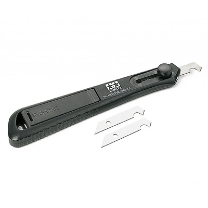Cet outil est parfait pour des tâches telles que la gravure et la découpe de feuilles de plastique, la création de lignes de moules sur des pièces de maquette. La lame peut être rétractée après utilisation et deux lames de rechange sont également rangées à l’intérieur du manche.