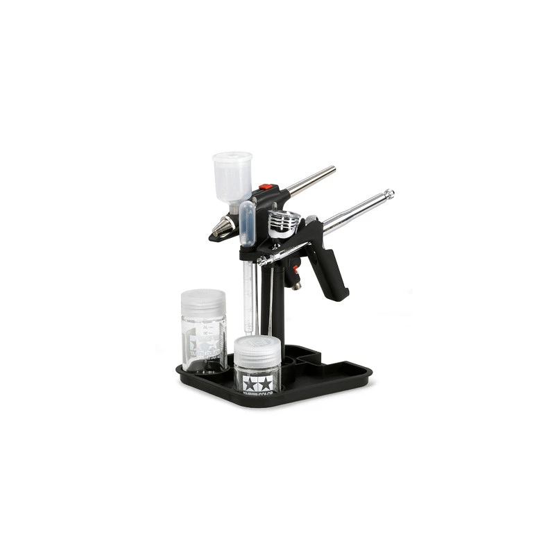 Stand et support Tamiya® pour deux aérographes. Inclus pipette longue.