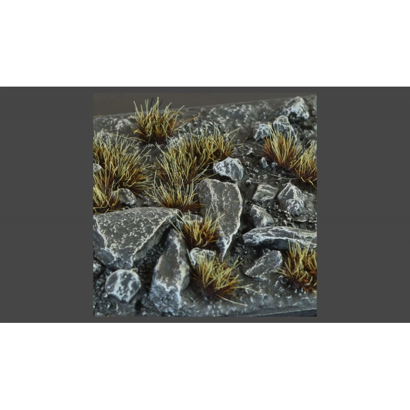 Un mélange de hautes fibres beiges et noires et d’un sous-bois brun GamersGrass.