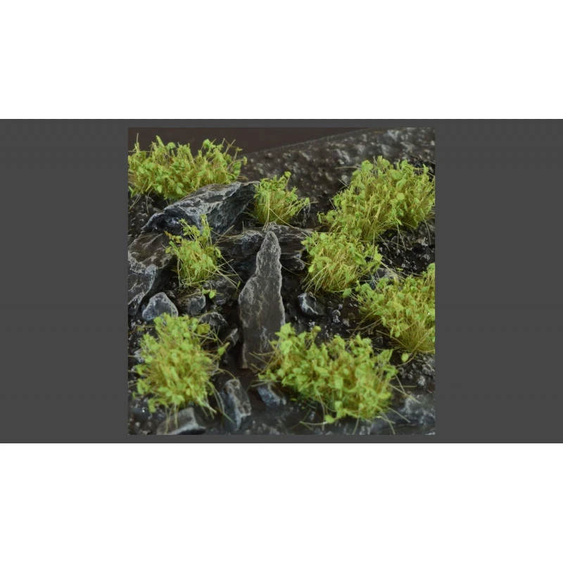 Une feuille de plastique de 14,5 cm x 6,5 cm remplie de touffes de GamersGrass. Les touffes mesurent 4 à 6 mm de hauteur.
