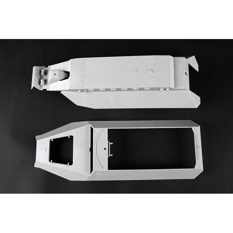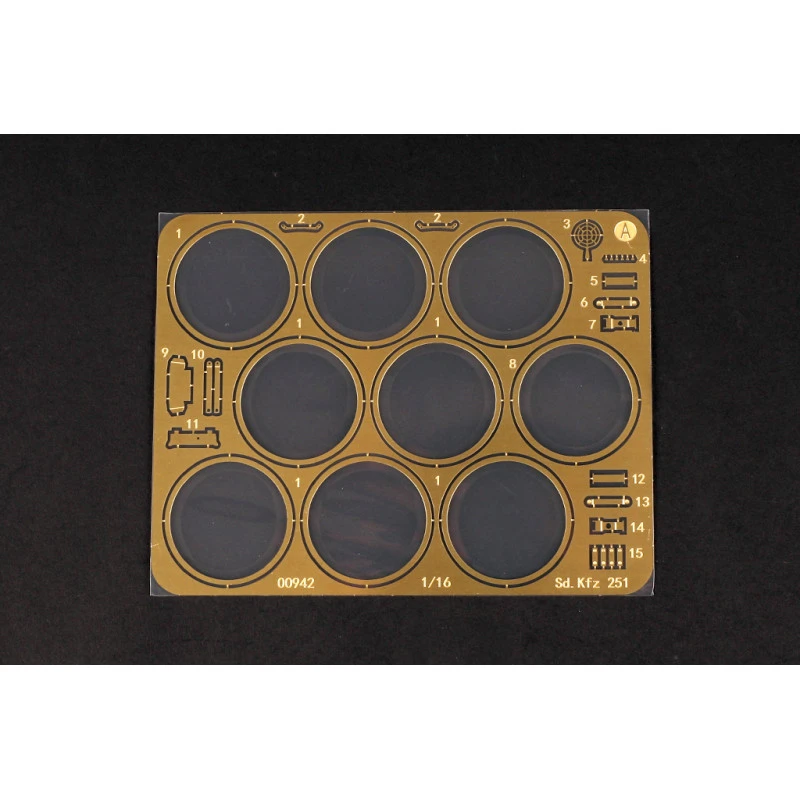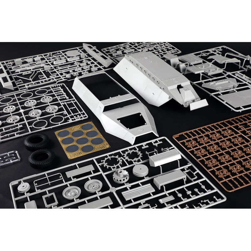 La maquette Trumpeter® du Sd.Kfz 251 D à l’échelle 1:16 est une représentation méticuleuse de ce véhicule historique. Le kit comprend deux grappes de photodécoupe, ajoutant un niveau de détail impressionnant aux éléments fins du modèle. Ces pièces en photodécoupe permettent de recréer avec précision les garde-boues, les supports d’armement et autres détails délicats, offrant un réalisme supplémentaire à la maquette.